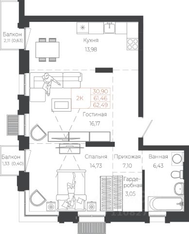 127 743 ₽/м²