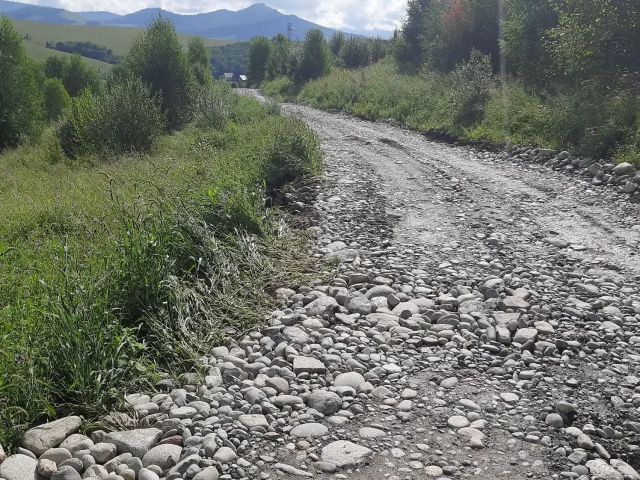 Свой подъезд, дорога вдоль участка, отсыпана отсевом.