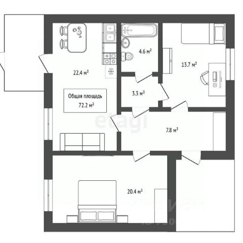 • ✅ Минимальная площадь: 20,1 м²