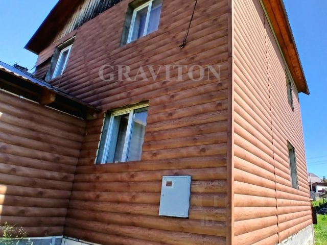 Дом утеплен: 1 этаж пеной, 2 этаж минватой, полностью обшит металлическим сайдингом под бревно блок-хаус.
