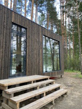 Уютный, отдельностоящий, благоустроенный дом с панорамными окнами, видом на реку. В доме спальня-гостиная с большой двуспальной кроватью и диваном, ванная комната, теплый пол, панорамные окна. На фото представлены реальные фото домов сейчас, в ближайшее время мы поставим террасы и благоустроим дома согласно нашему проекту. Ждем Вас в гости!