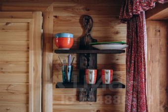 Просторный уютный деревенский домик, построенный из гигантских кедровых бревен включает в себя: спальную зону с двумя кроватями и прикроватные тумбочки; обеденную зону с удобным обеденным столом со стульями, посудой и чайником; прихожую с тумбой для обуви и вешалкой для одежды; санузел с туалетом и душевой кабиной.