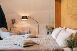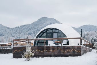 Номера этого необычного отеля представляют собой купола, под которыми очень тепло и уютно. В них есть все необходимые удобства для комфортного отдыха: климат контроль, удобная мебель, собственный санузел, бесплатный Wi-Fi.