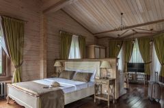 В номере: спальня с выходом на террасу; кровать "Queen size"; ванная комната; зона отдыха; спутниковое ТВ; мини-бар; общая зона с камином в коттедже.