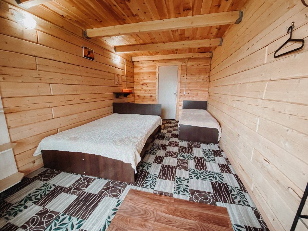 Трехместная комната в домике из двух комнат за стенкой друг у друга. В комнате отдельный вход и индивидуальный санузел.