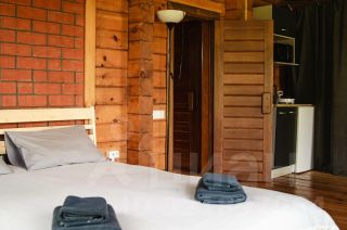 Дом - студия для двоих гостей. Дом с шикарными панорамными окнами и открытой террасой. Рассчитан для проживания двух гостей. В доме просторная спальня и компактная кухонная зона, душевая комната и санузел. Уютный дом идеально подходит для спокойного отдыха. В доме двуспальная кровать, микроволновая печь, электрический чайник, плита, холодильник, посуда. На территории парковка для автомобилей и мангальная зона.