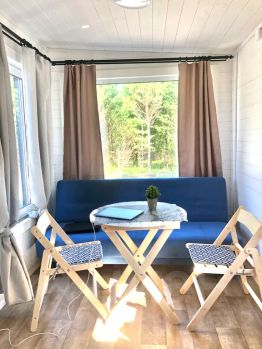 В доме есть все для комфортного проживания, кухня-гостиная, спальня, санузел и терраса. Имеется кухня, холодильник, стиральная машина, 2х спальная кровать, диван, душевая кабина, фен, утюг, мультиварка со всеми функциями для приготовления еды, кондиционер, мангал.