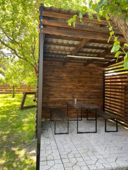 На территории есть парковочное место, беседка, качели, мангал.