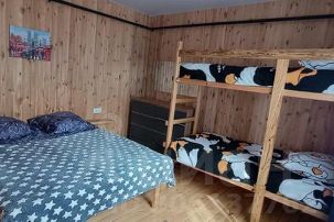 Дом рассчитан для комфортного проживания до 4 человек. Для семьи из 5 человек (2взрослых, трое детей) возможно размещение третьего ребенка до 3 лет, без предоставления спального места.
