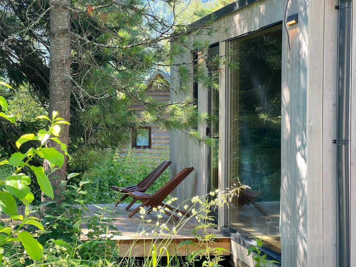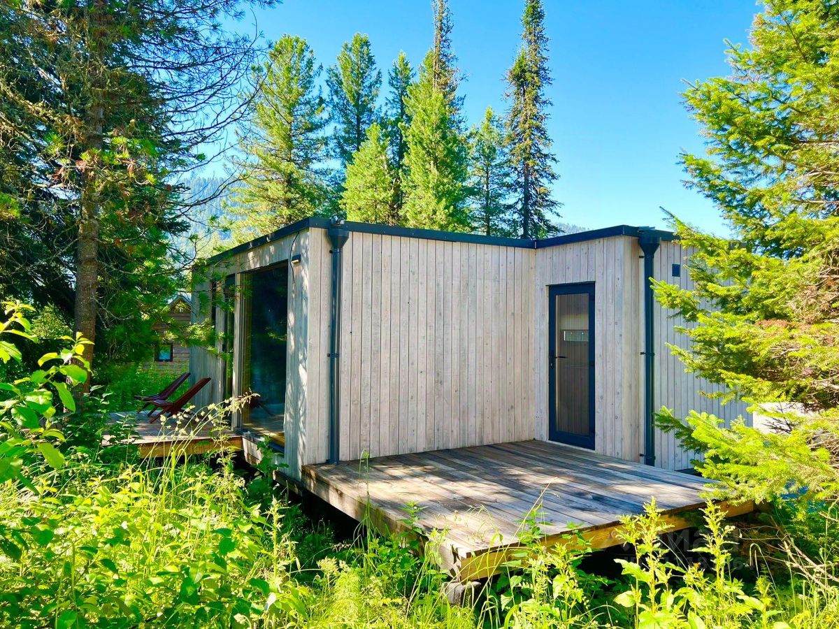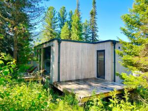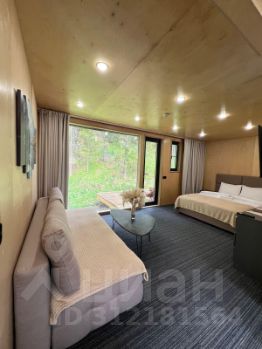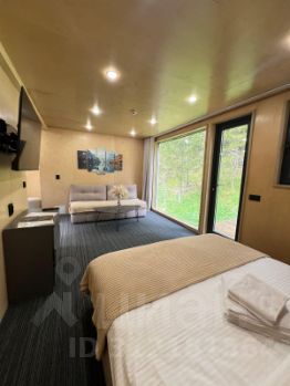 Модульная студия с террасой и панорамным видом на хвойный лес, горы и эко-отель. Есть возможность для дополнительного размещения на комфортном двуспальном диване.