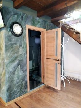 На 1-ом этаже - кухня-гостиная и санузел (душ).