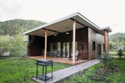 Есть свой spa-дом, чан и банька на берегу реки.