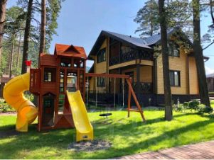 На территории: 2 беседки, 2 мангальных зоны, зона костровища, детский городок, детский бассейн, детский батут, спортивный комплекс.