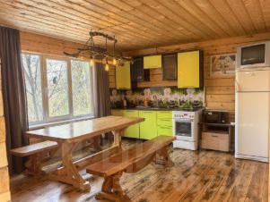Есть кухня, на которой вы можете готовить самостоятельно - плита, духовка, микроволновка, посуда, все есть. Ванная комната, оборудована сан узлом, ванной, водонагревателем и стиральной машинкой (на 1 этаже).