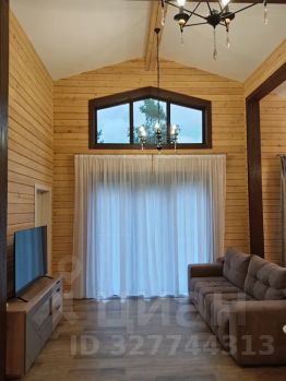 Интерьер выполнен в современном стиле с использованием натурального дерева, создающего тёплую атмосферу. Гостиная оборудована удобным диваном и телевизором с кабельным ТВ. На кухне установлена современная бытовая техника, включая холодильник, микроволновую печь и посудомоечную машину.