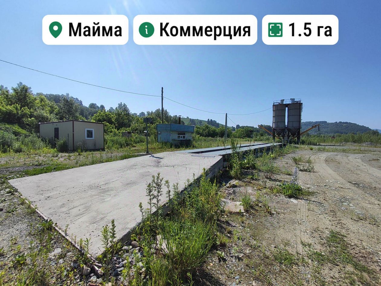 Продаётся земельный участок промышленного назначения площадью 1,5 гектара, расположенный на выезде из Маймы, за постом. Участок ровный, покрыт отсыпанным щебёночно-гравийным материалом (ПГС), что существенно облегчает строительные работы. Объект идеально подходит для размещения бетонного завода благодаря выгодному соседству со щебеночным и песчаным карьерами.