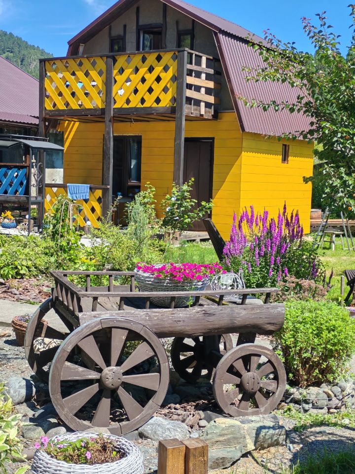 Дом из двух двухэтажных номеров с террасой и видом на Катунь и горы.