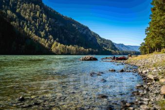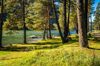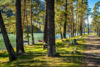 Вход на территорию со стороны Катуни, откуда начинается прогулочная тропа по берегу 2.5 км с шикарными видами.