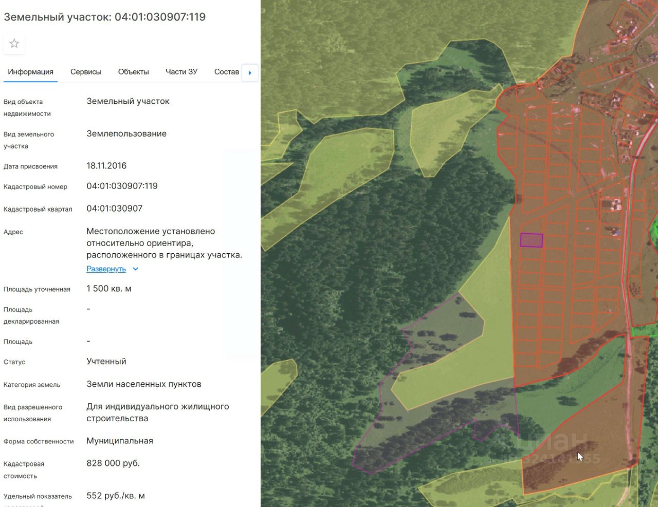 Земельный участок с кадастровым номером 04:01:030907:119, местоположение: Российская Федерация, Республика Алтай, Майминский район, Бирюлинское сельское поселение, с. Александровка, Площадью участка 1500 кв.м.,