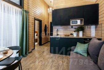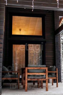 2. Гостевой дом "Темный" 42 м², вместимость до 4 человек. Две комнаты, терраса и ванная комната в темных тонах для любителей более строгого стиля.