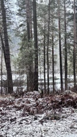 Панорамный вид на Катунь. Земля богата деревьями породы сосна.