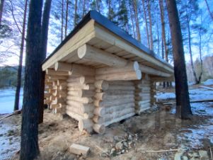 — рубленая баня на берегу реки