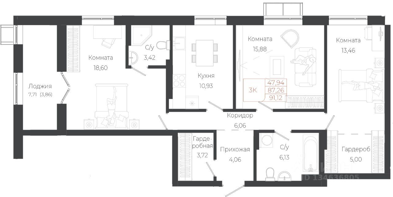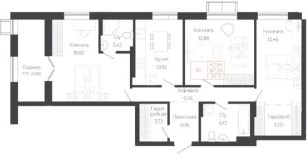 Общая площадь91,11 м²