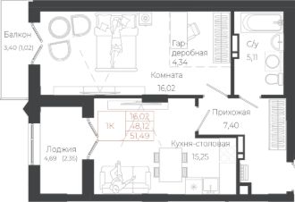Общая площадь51,49 м²