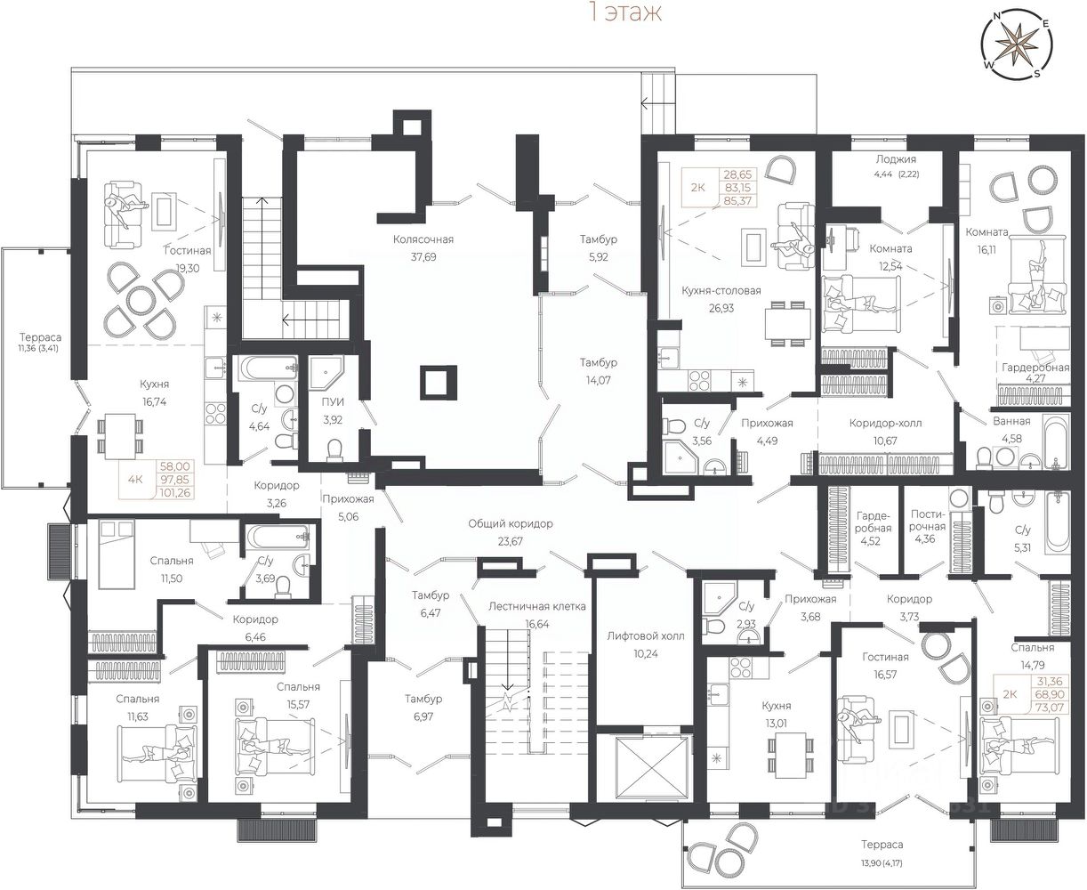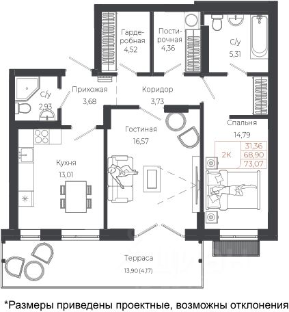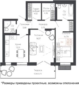 Общая площадь73,07 м²
