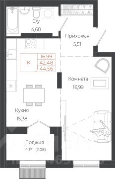 Общая площадь44,56 м²