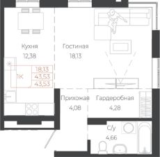 Общая площадь43,53 м²