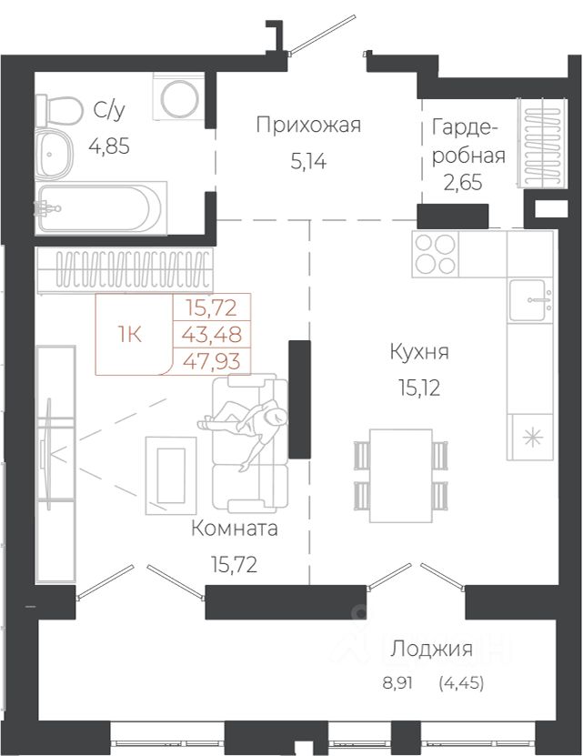 Общая площадь47,93 м²