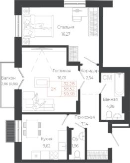 Общая площадь59,38 м²
