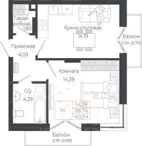 Общая площадь40,34 м²
