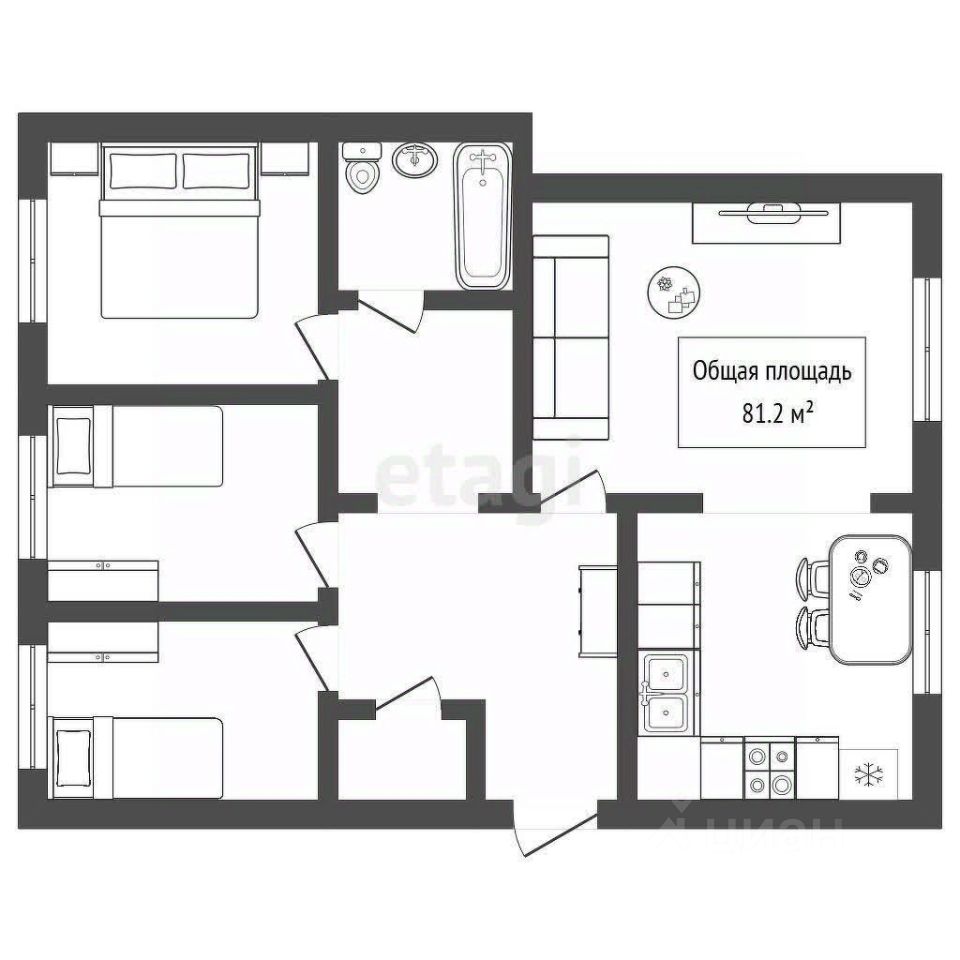 Просторная кухня-гостиная, 3 изолированные комнаты, гардеробная, 2 застекленных балкона, раздельный санузел.