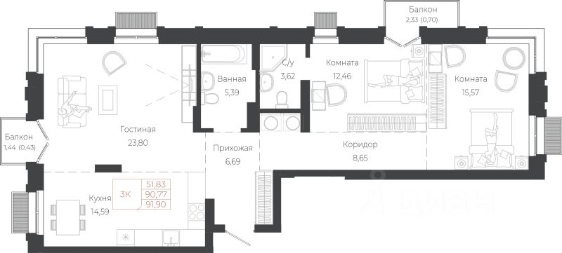 91,9 м²