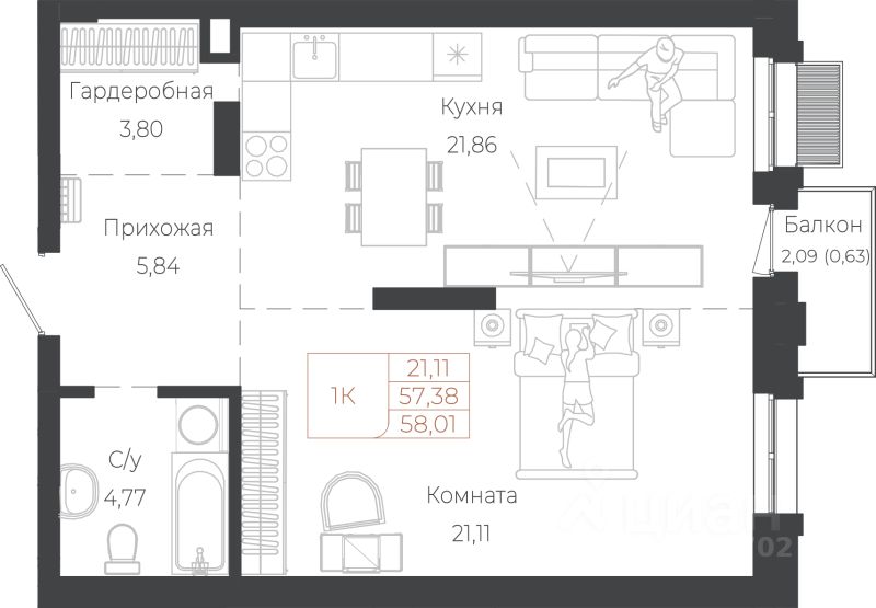 58,01 м²