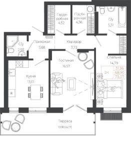 73,07 м²