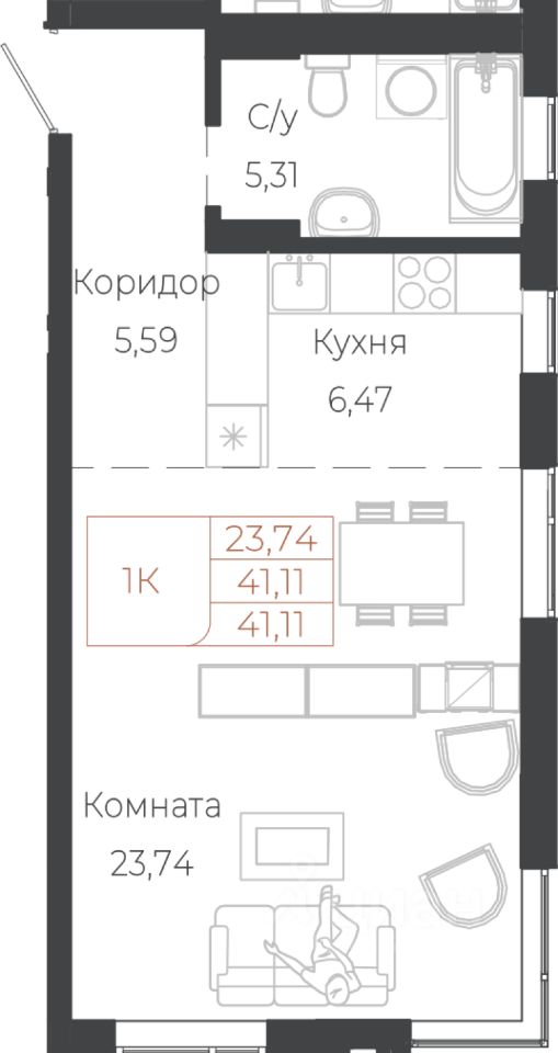 41,11 м²