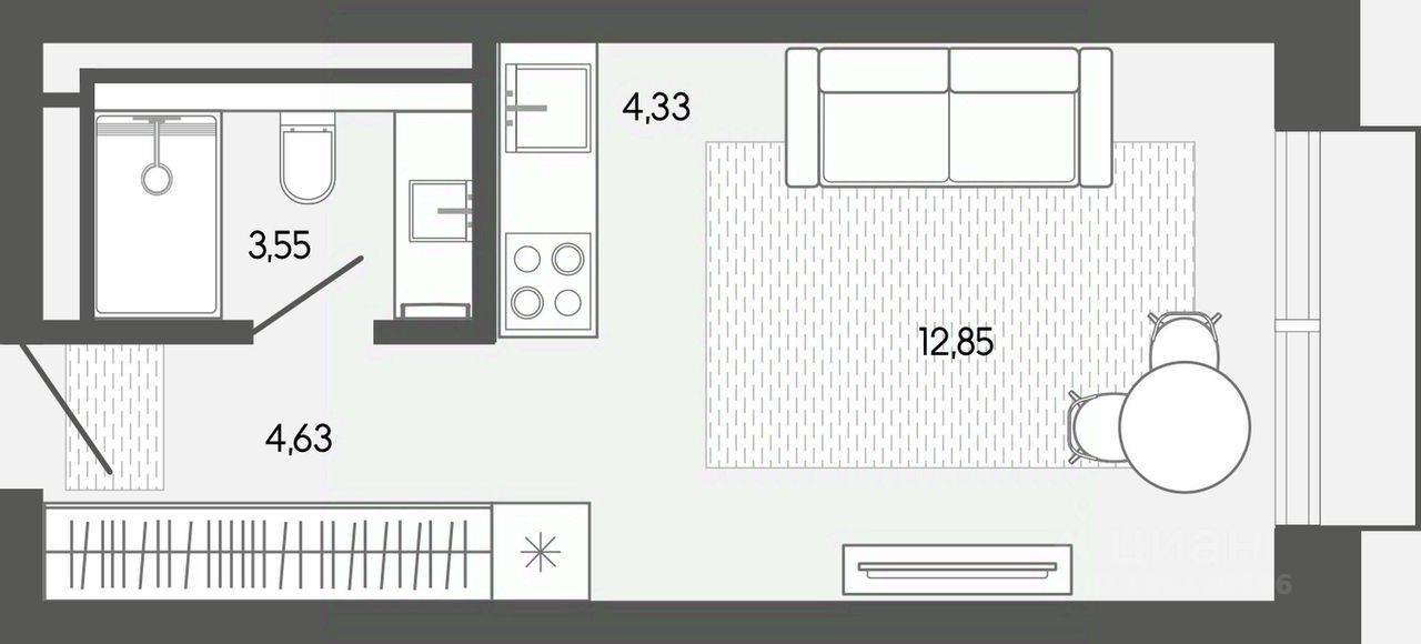 Продается апартаменты-студия, 25,36 м²