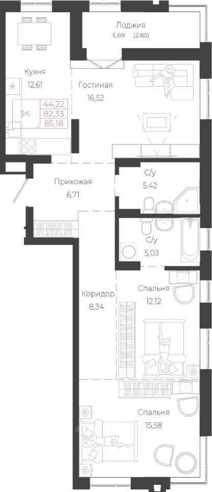 Общая площадь85,18 м²