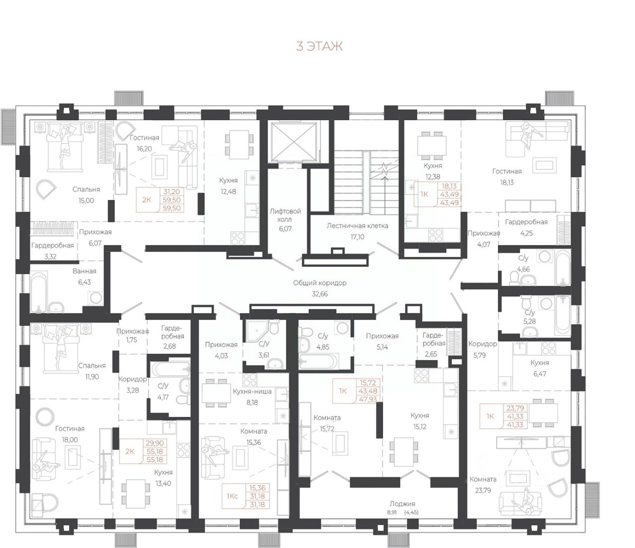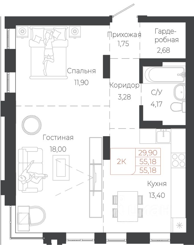 Общая площадь55,18 м²