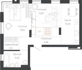 59,5 м²