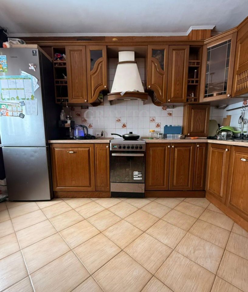 Кухня из массива дерева, встроенный холодильник и посудомоечная машина (остается по вашему желанию)