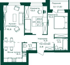 61,7 м²