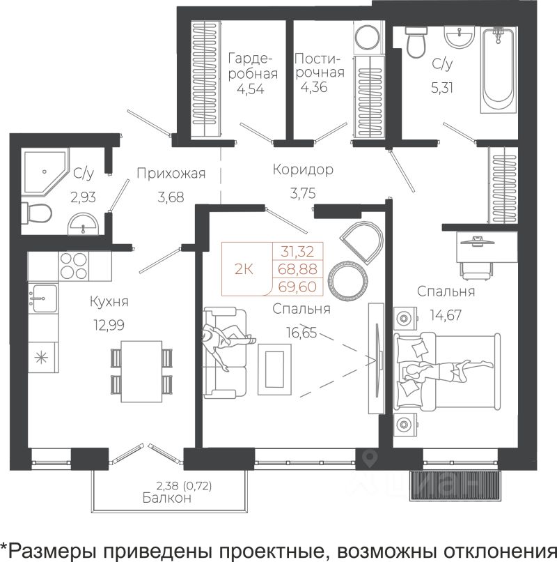69,6 м²