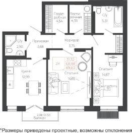 Продаётся 2-комнатная квартира в строящемся доме (Корпус 5 очередь 1), срок сдачи: III-кв. 2029, общей площадью 69.6 кв.м., на 3 этаже. Новый жилой комплекс расположен по адресу: с. Майма, по ул. Энергетиков.
