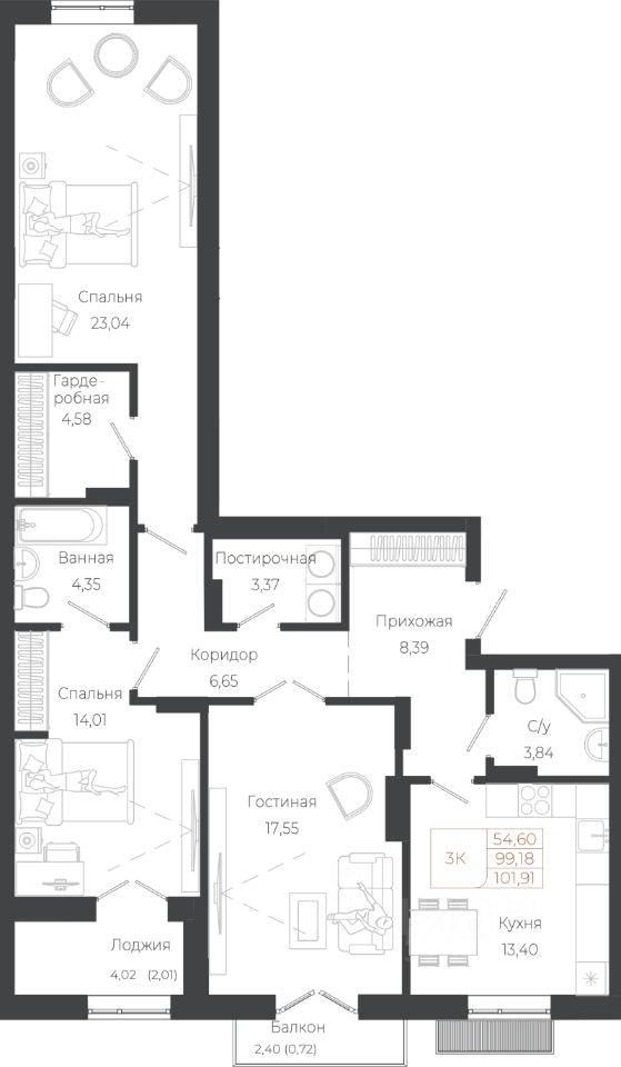 Продаётся 3-комнатная квартира в строящемся доме (Корпус 5), срок сдачи: III-кв. 2029, общей площадью 101.91 кв.м., на 3 этаже. Новый жилой комплекс расположен по адресу: с. Майма, по ул. Энергетиков.