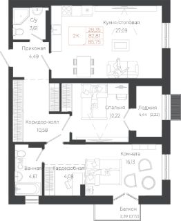Общая площадь85,75 м²
