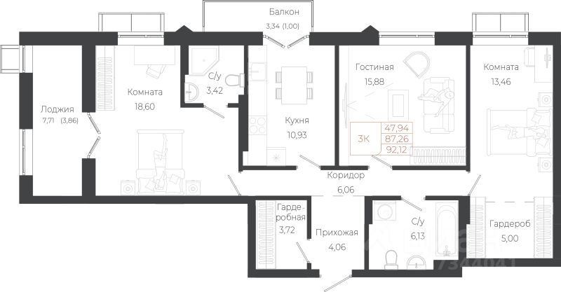 92,12 м²